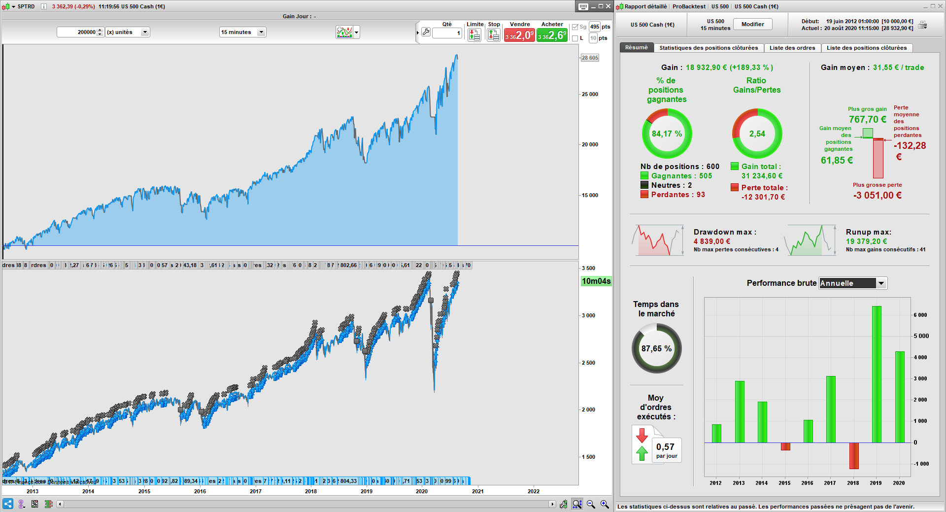 I have some doubt about the interest of it because the index curve and the equity curve are very similar, and it is a long only strategy on a bull market index… so why not just buy and hold ?