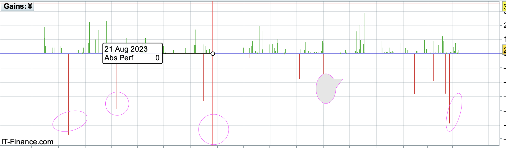 found a problem but still haven’t resolved the issue, i.e., the loss is significant higher than the average gain trades.