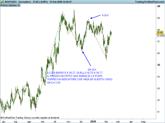 Buongiorno è possibile costruire un indicatore che per ogni candela mi indichi di quanto si è spostato il prezzo dal min/max dello zig-zag precedente? Spero di essermi spiegato chiaramente, se necessario allego un grafico. Grazie