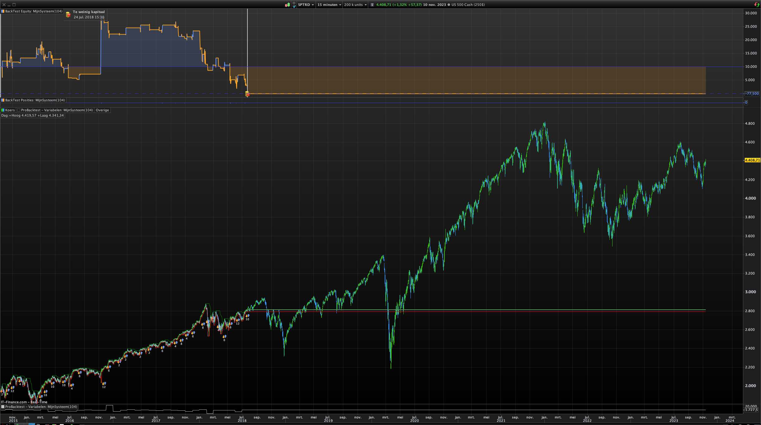 I don’t see any difference between these two contracts, only when I back test them I get the same result with the US 500 Cash as your back test, only when I use the other contract, I get the back test below… (Both 200k units)