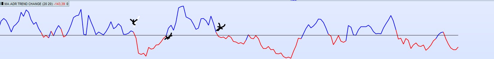 j’ai remplacé la fonction histogramme du return (à la ligne 32) par la fonction line pour obtenir une ligne de type MA et modifié la gestion des couleurs de ligne comme indiqué dans les fichiers joints En gros ,chaque changement de couleur correspond a un changement de valeur/direction et on devrait pouvoir en déduire un signal de trade , dès le changement de direction/valeur /couleur de MAD : un BUY au changement de couleur /direction/valeur du MAD de rouge remplacé par la couleur bleu, un sell au changement de direction/couleur du MAD qui devient rouge après avoir été bleu .
