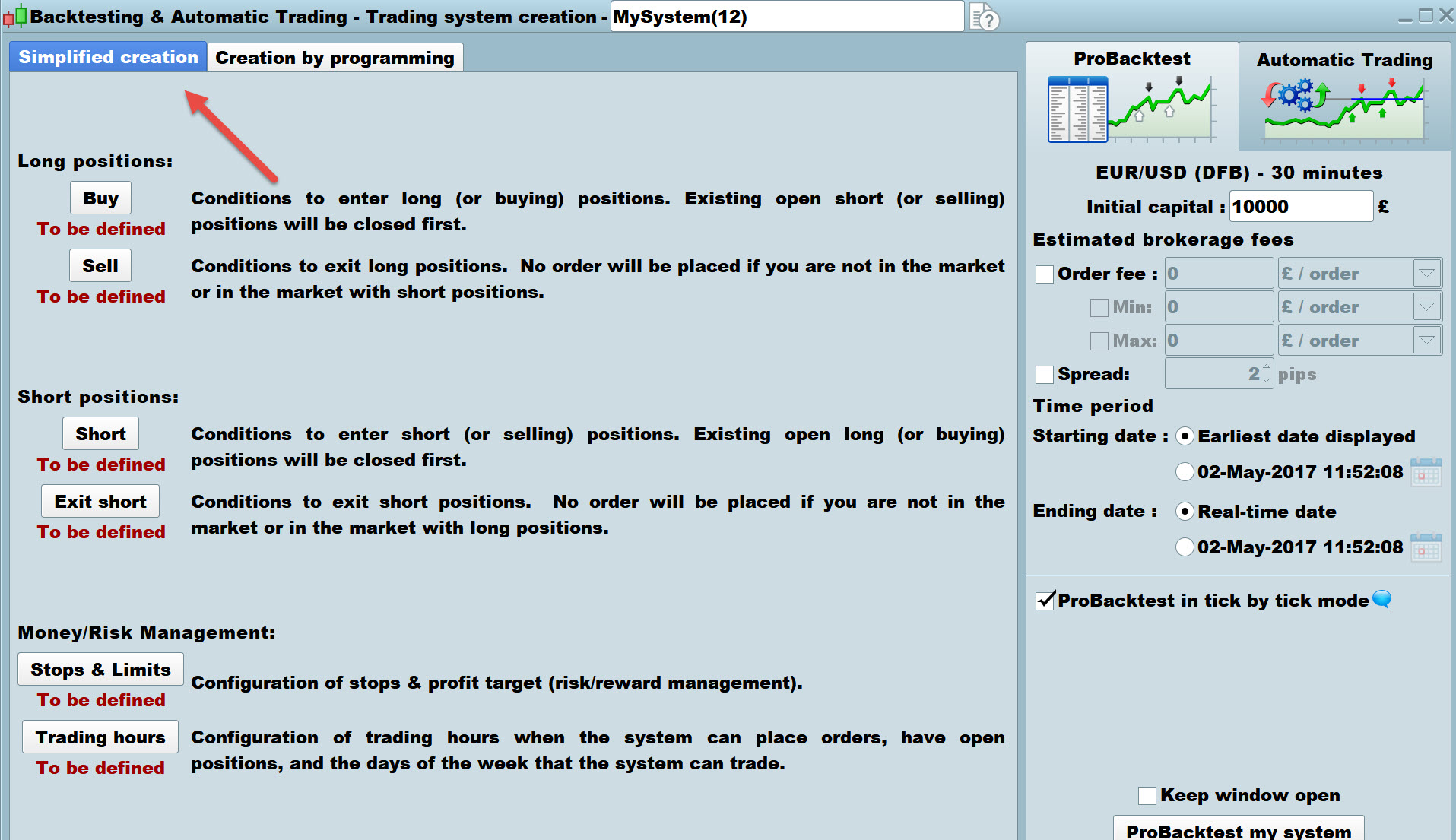 I wan’t that my strategie go long if: