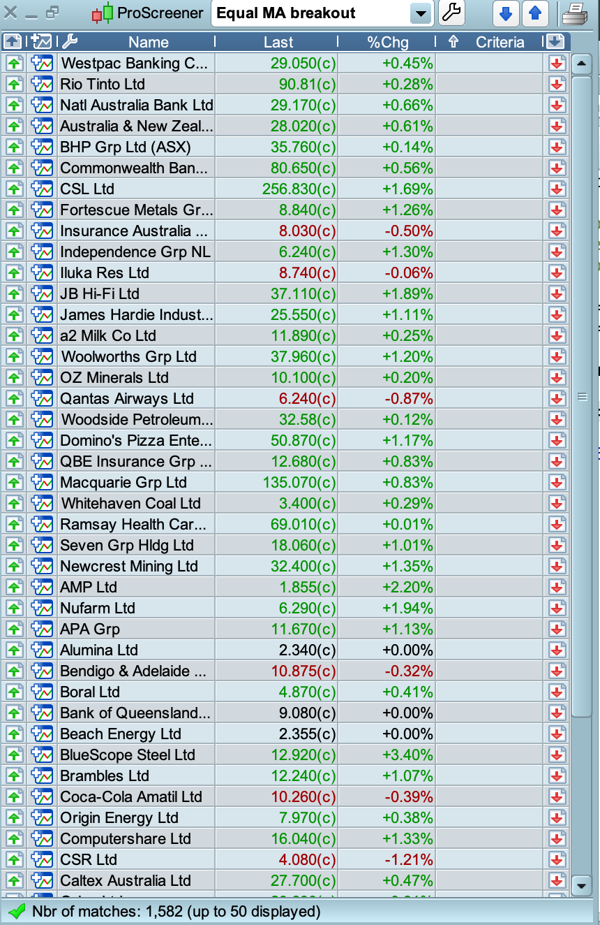 Just that some of the stocks that I have found with the MA’s tight are not coming up on the scan.
