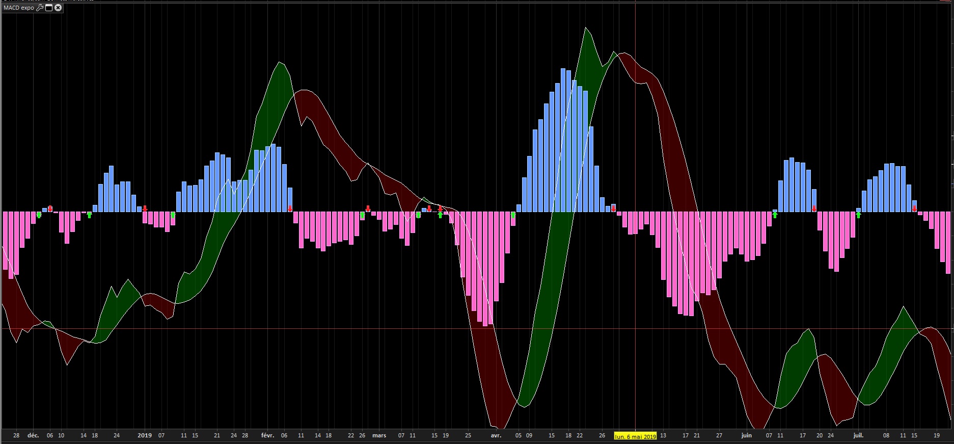 my purpose was to create an indicator that displays an arrow on the macd when the histogram crosses the zero line.