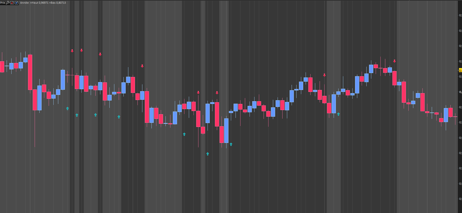 Sadly the arrows are very often one candle too early, (as you can see in the screenshot)