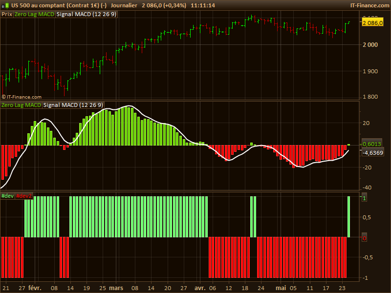 Merci, sur ma plateforme le MACD zéro retard s’appelle “ZeroLag MACD”, j’ai donc remplacé son nom et ignoré la variable de la ligne de signal, comme ceci :