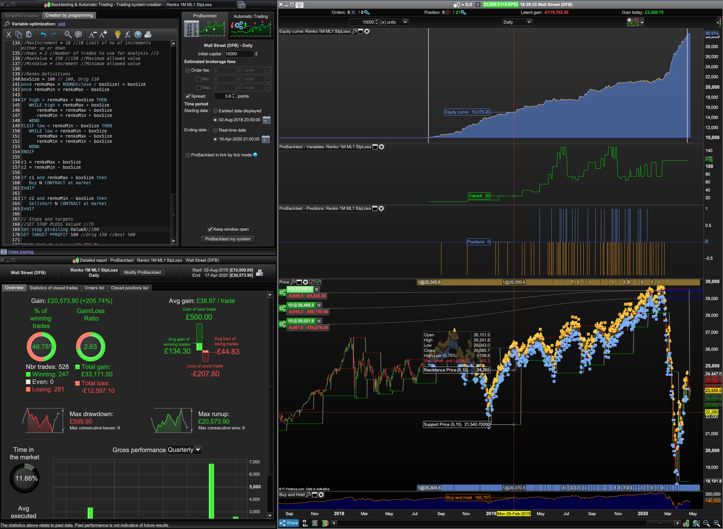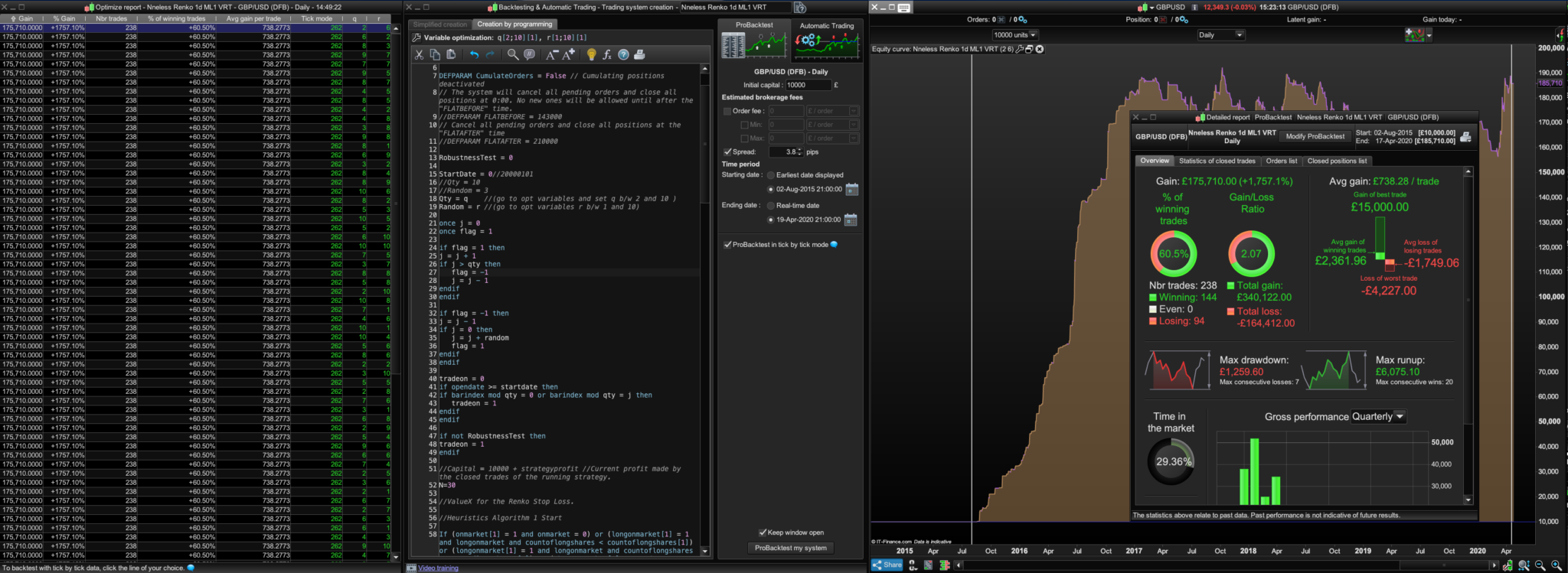 I’ve also downloaded some of the recent itf’s here (and thank you for posting them) to find they either trade no more than one position or produce tbt daily chart warnings. The slightest modifications, which are then put back to the original itf version, cause problems. I download the original again and it trades okay (although without profit). It’s like the code is SO sensitive it’s ridiculous. See: https://www.prorealcode.com/topic/machine-learning-in-proorder/page/9/#post-126323