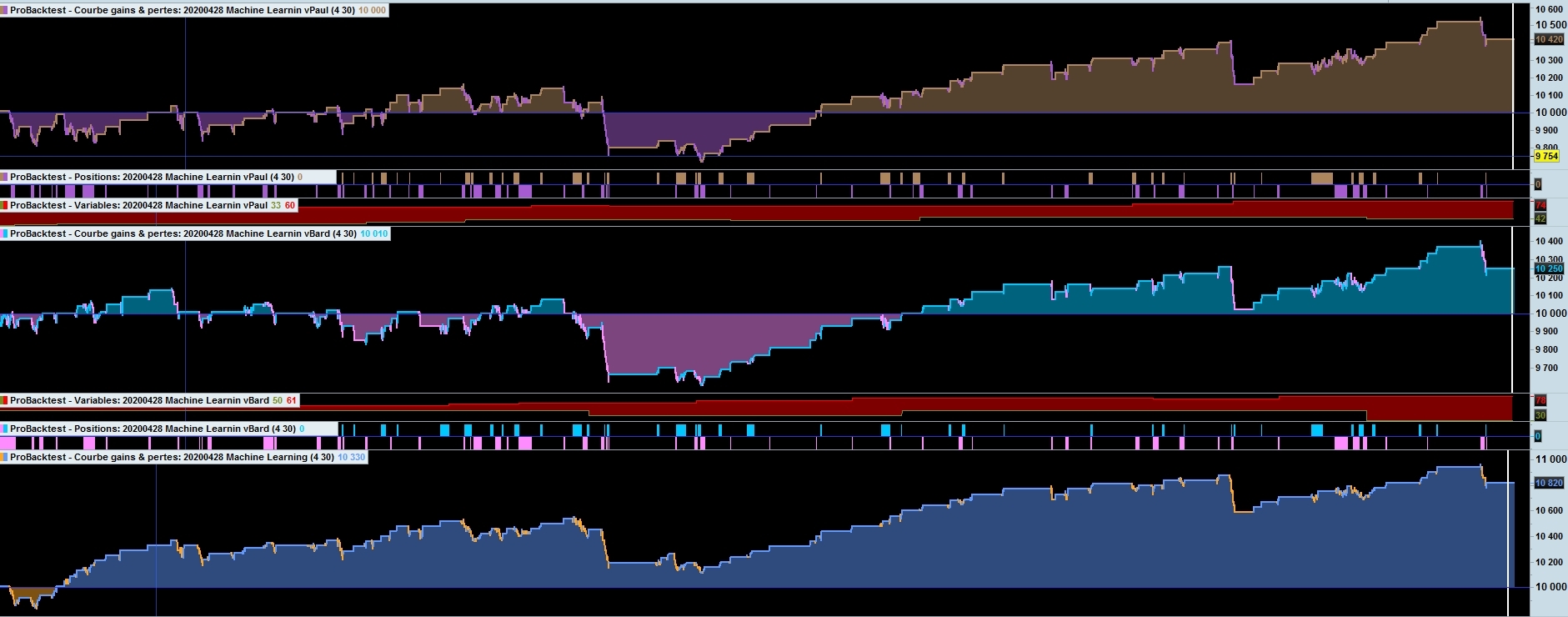 Then ML can take out of those 10 row which set of parameters will be the best. Especially on a short timeframe (1s-10s), a few days later again optimisation can be made and the best set of parameters added to the first group, so you buildup data for ML which covers more market scenarios.