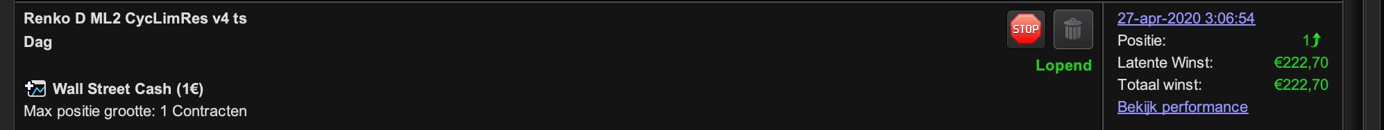 Cheers for the pointer, I knew those equity curves “on tbt” sometimes looked very improbable! I was actually thinking of experimenting with non ML Kase Dev Stops (posted earlier) or Kaufman’s Volatility Stops. This is totally needed now. Might even be worth setting the ML algo on them too (for a Renko ML2 boxsize and stop loss std deviation amount before the stop licks in or lookback period). I will post if I find anything that reliably improves profitability. I think Paul’s v4 Trailing Stop (TS) might offer a solution. I’m going to look at that version later.