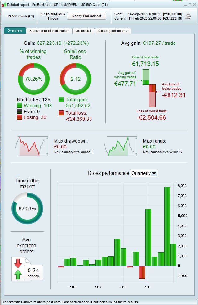 Yes – draw down for both B and H and the strategy is terrible and it does not make more money than B and H and was under performing the B and H for most of the back test so in my mind you might as well just buy an ETF of the index. Your capital will be far safer than spread betting with it.