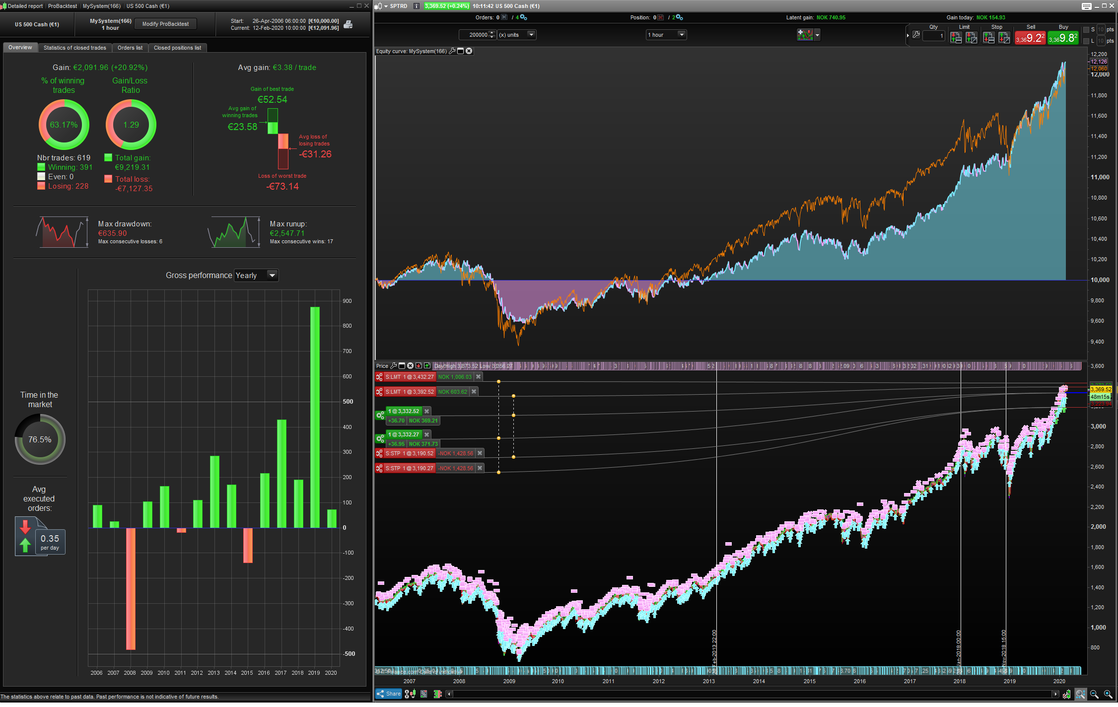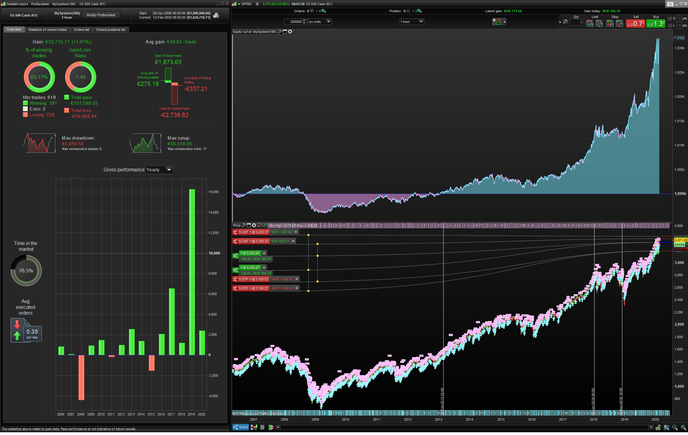 Are we looking at the same graph? In 2009 the buy and hold line is way below the system line, ie greater drawdown. From 2006 to date, the SP moved 2118 points; the system made 2096 points. Not much in it, esp considering we’re looking at 10 years OOS. And, to repeat what I’ve said above, the ‘% drawdown to quit’ had been disabled. In the real world it would have done exactly what it was there for.
