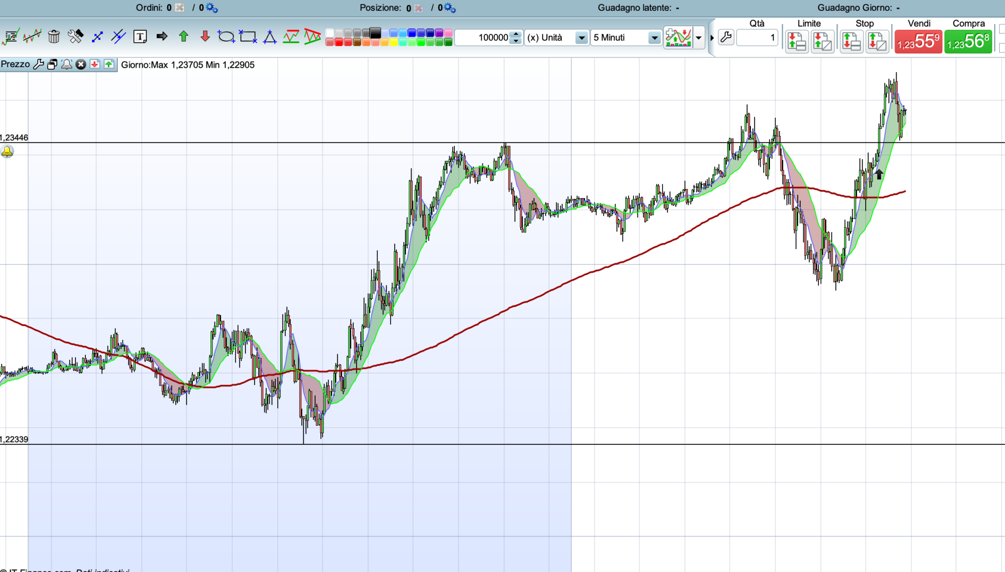 avrei ottenuto il bypassare per un eventuale operazione long qualora il prezzo avesse incrociato al rialzo la high del giorno precedente quindi 1,2344…. cosa che non è avvenuta pur avendo tutte queste caratteristiche