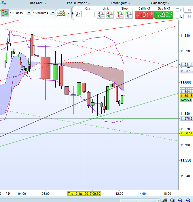 I drew a trend line on the DAX 1 hour chart (price 11591.7) , and price is below the trend line.