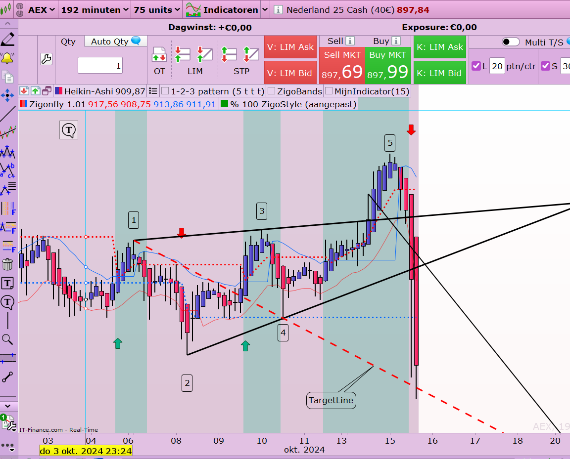 Ik vond gisteren het begin van een WolfWave in de dax-40 en tegelijkertijd in de AEX-25 index (Nederland).