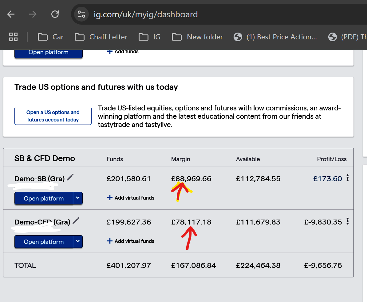 We can see margin on our IG Dashboard after a trade is opened; see attached at red arrowheads.