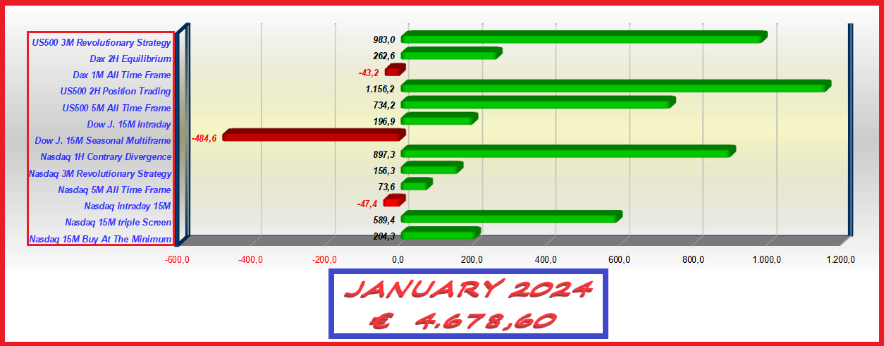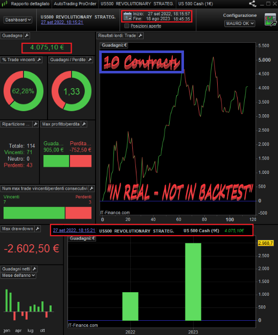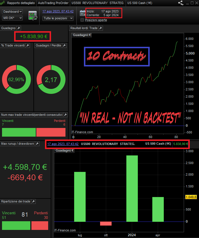 US500 continues to do very well with both ALL TIME FRAME and REVOLUTIONARY STRATEGY, together they earned €2,700