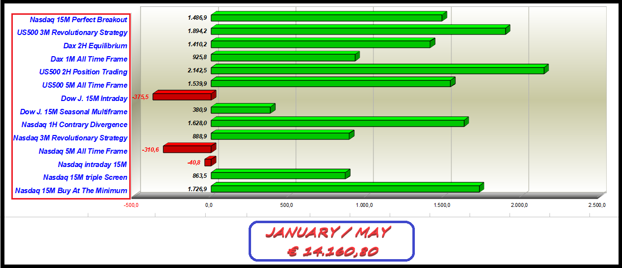 The result of the first five months is excellent with a total earnings of €14,160.80.