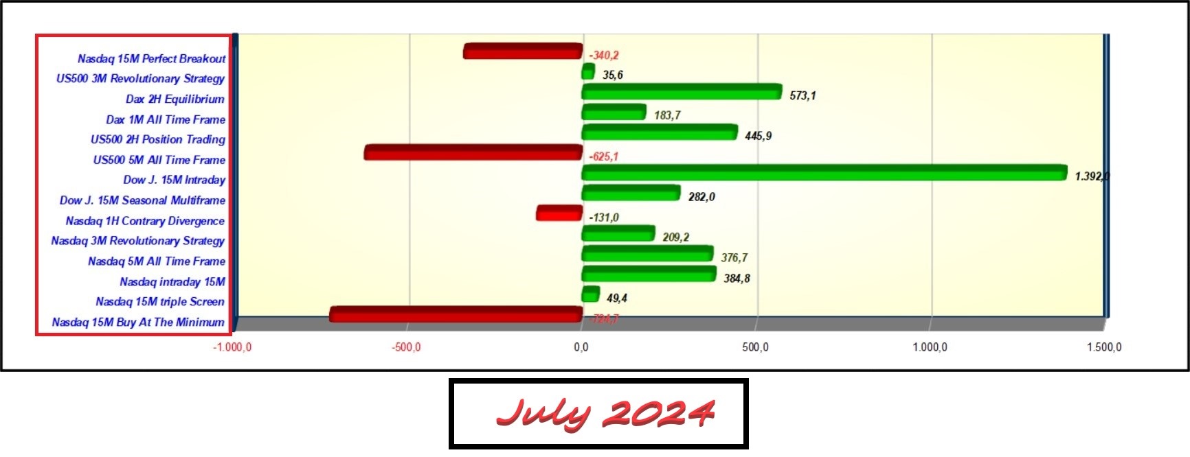 Below in the attachment you can see the results of the 14 algorithms of these 7 months with the results of the individual algorithms total, monthly and July.