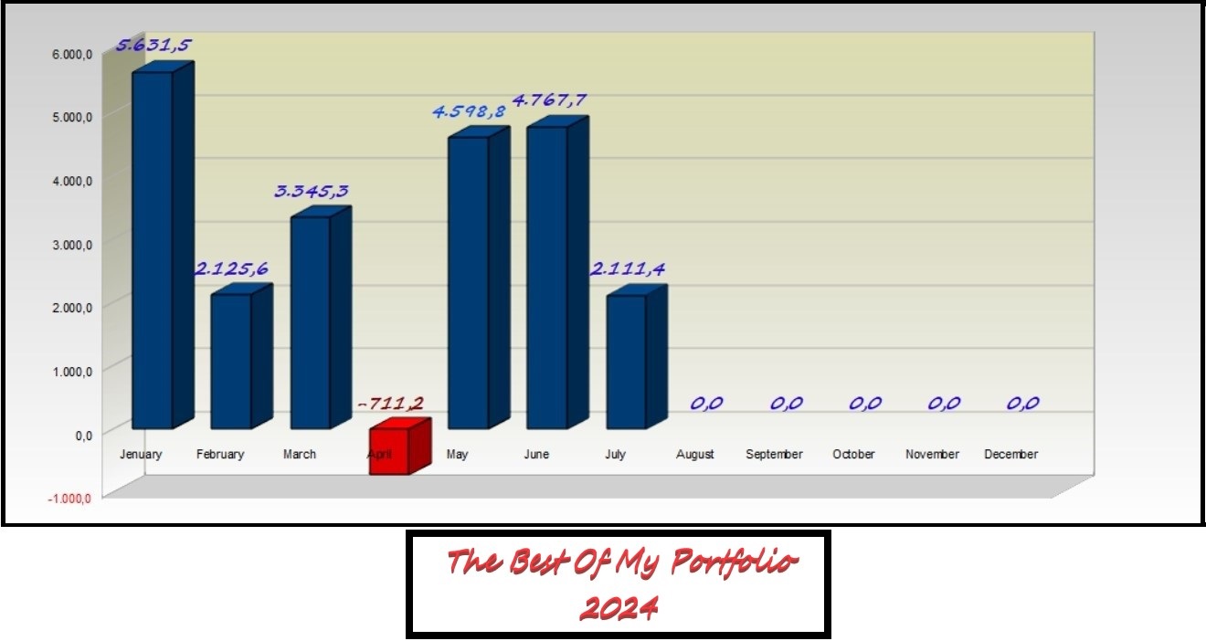 The result of the first seven months is excellent with a total profit of € 22,147.50, which corresponds to € 3,165 per month.