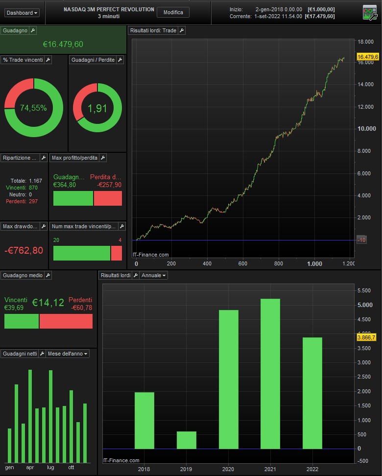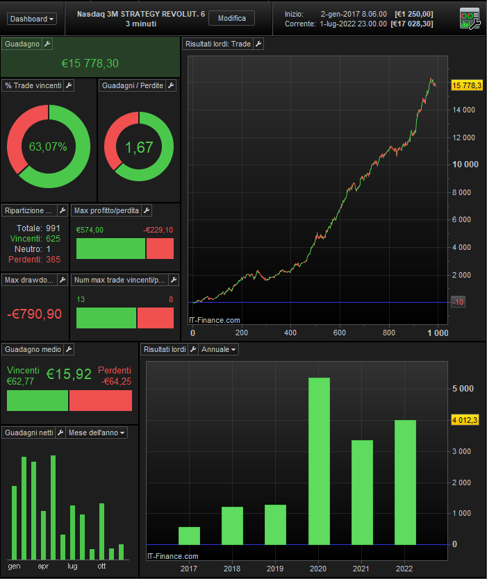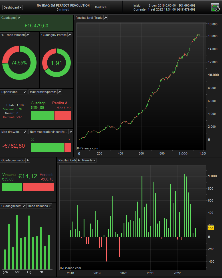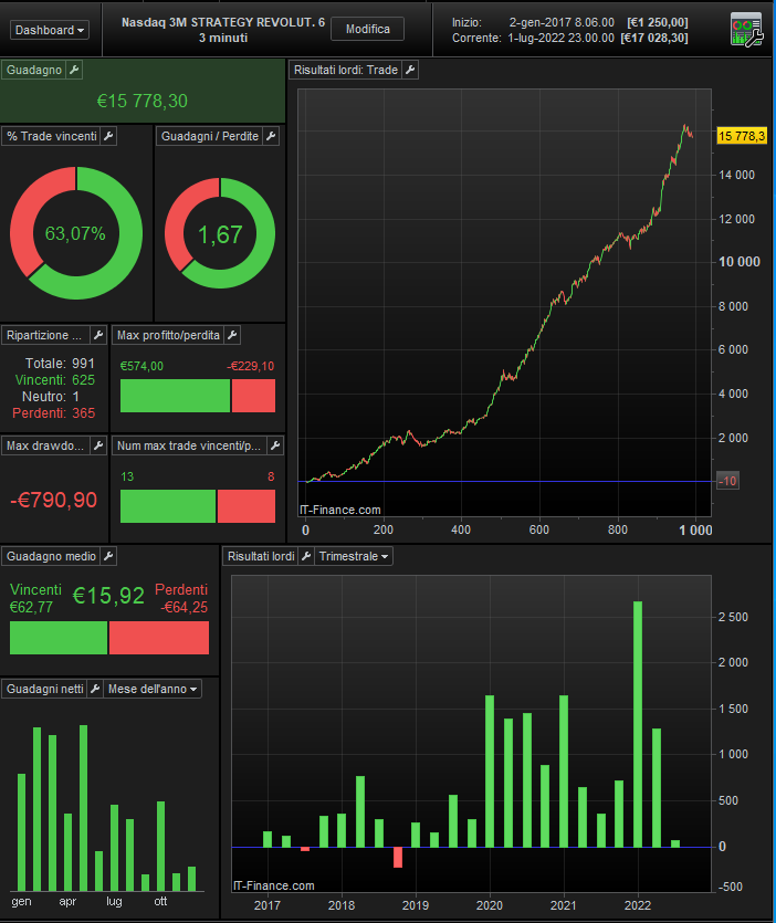 I take this opportunity to remind you that in September there will be an important news for the Revolutionary strategies, there will be a new BOT with the NASDAQ index and it will be inserted together with the others for free, this trading system will also work with a time frame of 3 minutes, but it will be a completely different strategy from the others.
