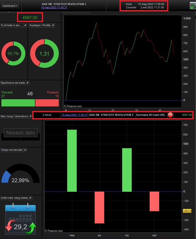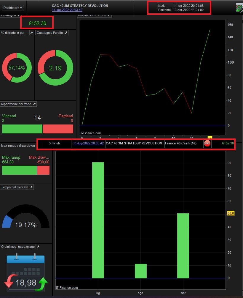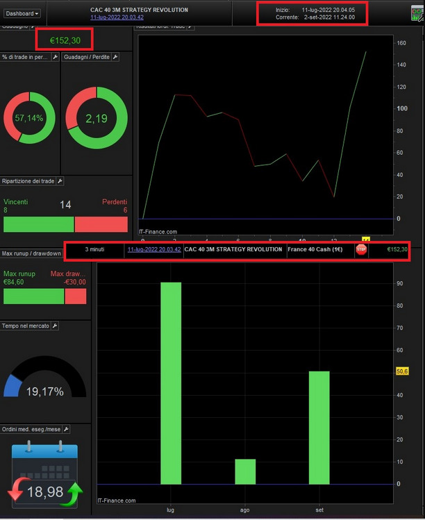 I send you the screenshots since they were put in Live, the only one with a small loss is the dax n.2 …. but this in September (I had already programmed it), will be replaced with the Cac 40 index (I send you the screenshot of the Live of the 2 months), then again in September as already mentioned above, a 3-minute Bot will always be inserted on the Nasdaq completely different from these.