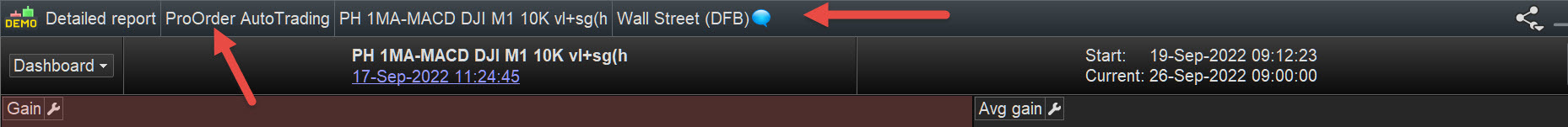 Below I put all the screenshots ….. unfortunately it is not possible to put more than 4 at a time so you will see more pages, the Dow J and US500 the Live is double as it has had an update of the Money Management.