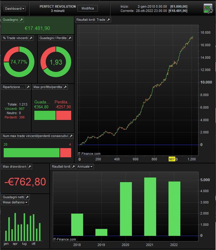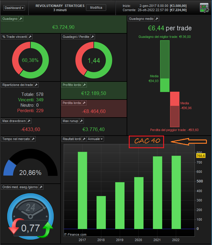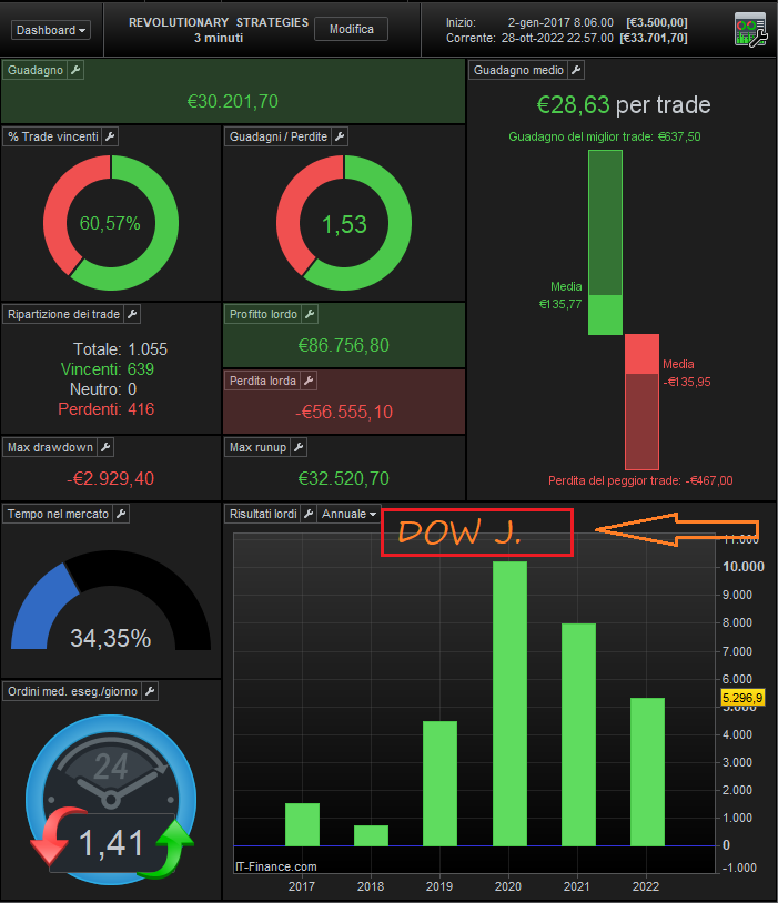 Strategy N ° 2, in just 5 months € 785 —– Perfect balance of results between short trade scalping and long trade position trade —– with only € 1 1 contract ……. 35 Commerce, a single stop of ONLY 20 cents