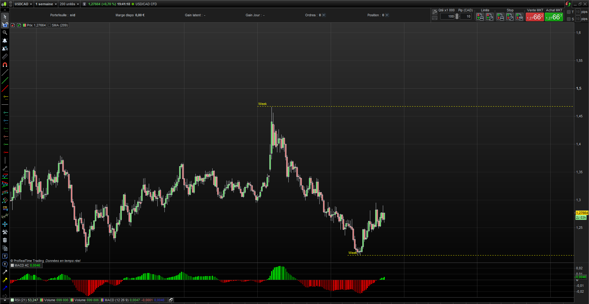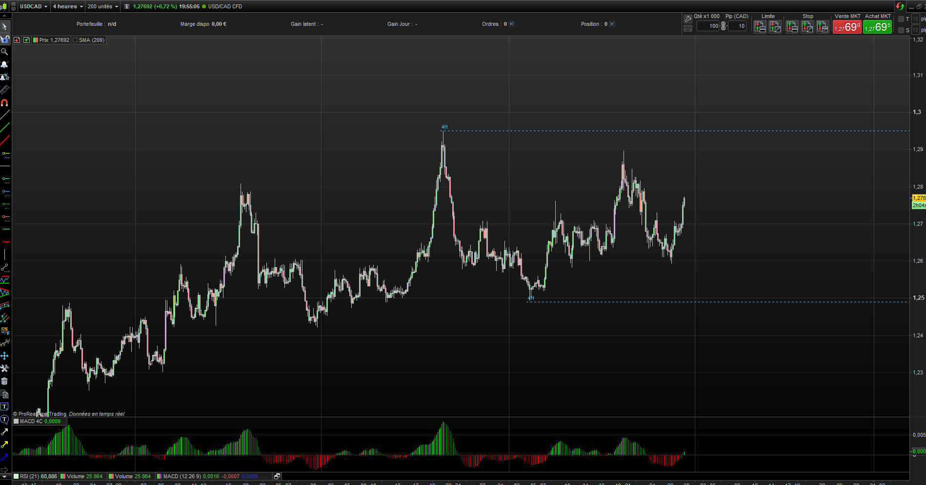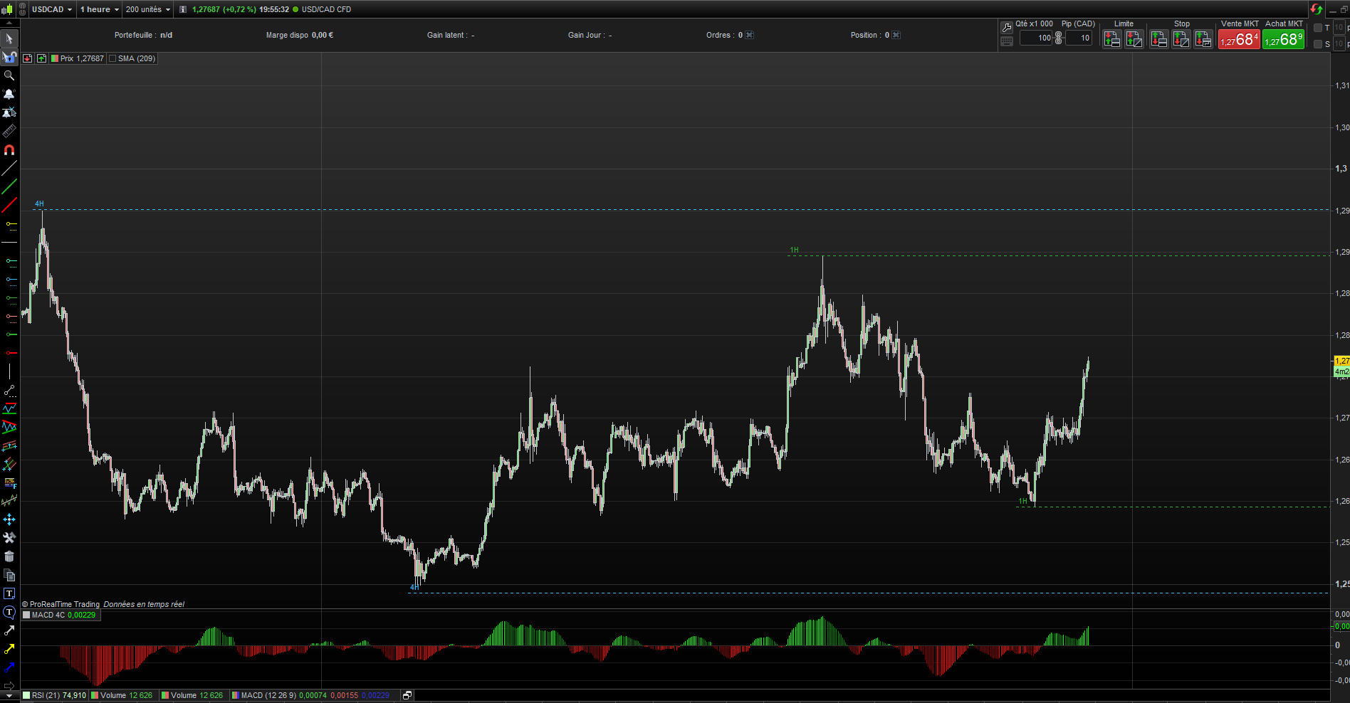 Je joins ici un exemple de la paire forex USDCAD ou je dessine les Highs les Lows dans les Timeframes ( Weekly, daily, 4h et 1h )