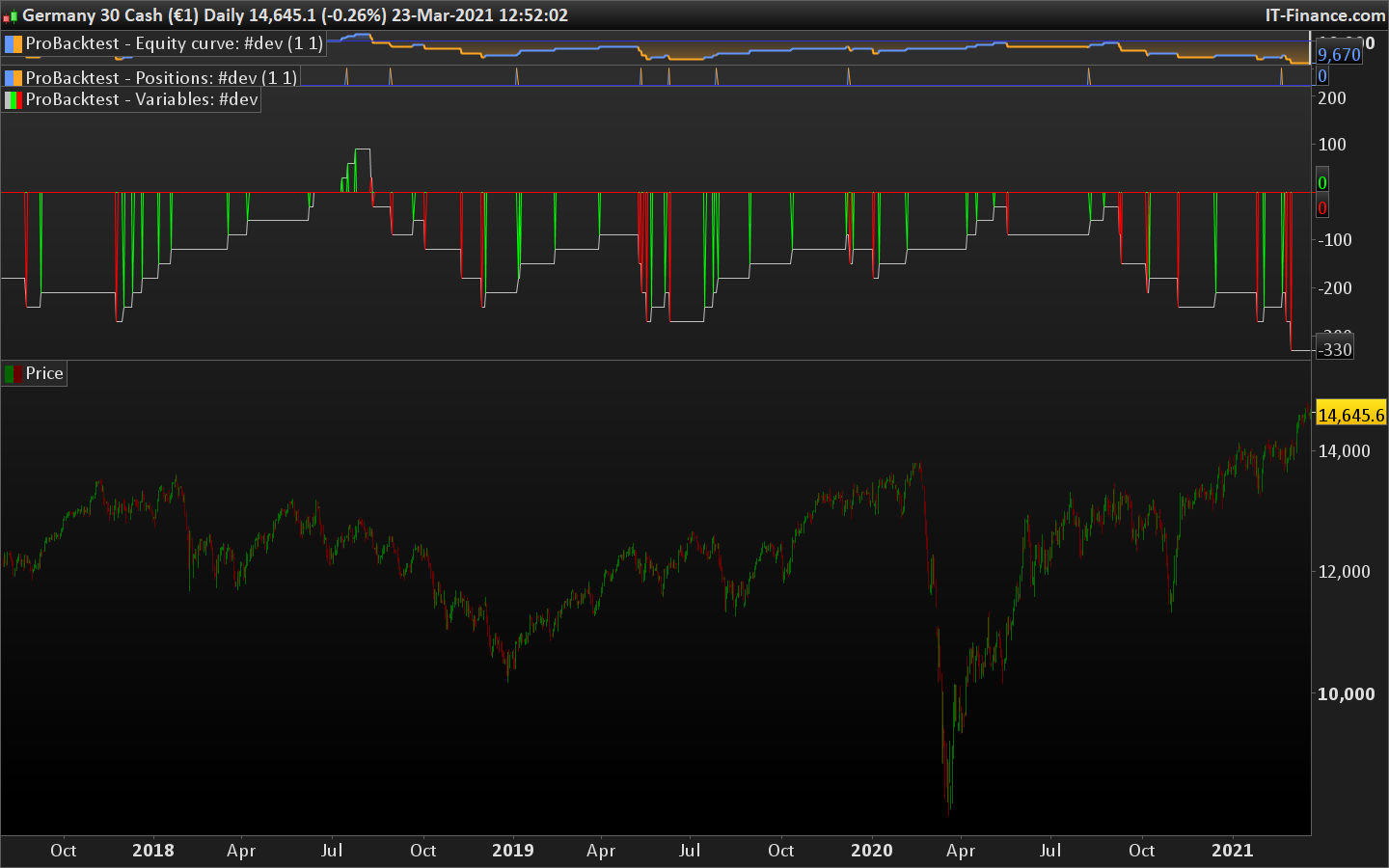 Voilà ce qu’il est possible de faire, les pics rouges et verts représentent les pertes / gains :