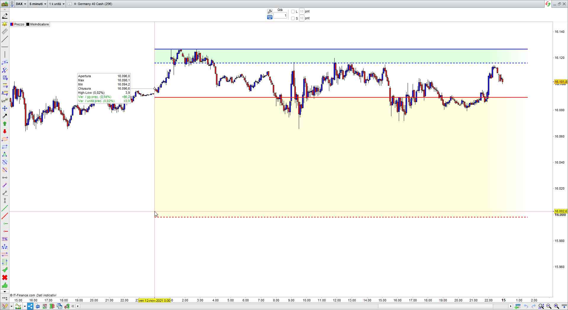L’unica cosa che non capisco è perchè non mi disegna il minimo di ieri se metto il time frame 3 minuti, mentre funziona perfettamente con tutti gli altri.