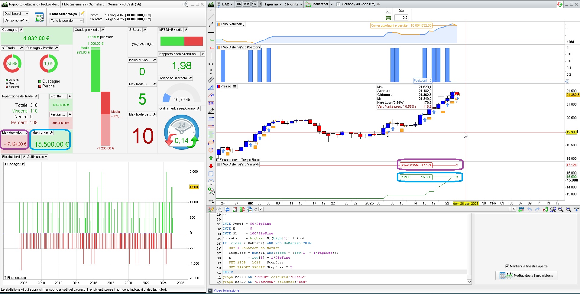 No, as we always have to store the highest value, both for RunUP and DrawDOW, this code matches ProRealTime calculations (on Dax, DailyTF) as shown in the attached pic: