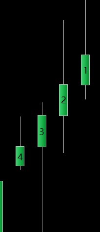 Vorrei identificare la chiusura massima e minima delle quattro candele precedenti, escludendo la candela [0].