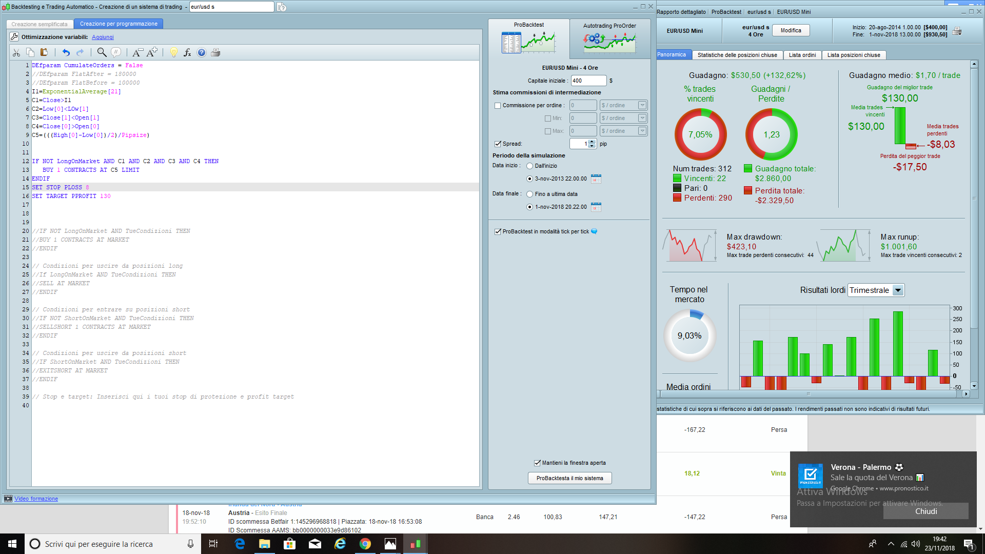 buon giorno allego un immagine nel quale mostra un max run up di 1000 euro,max trade vincenti consecutivi 2.ora mi chiedo come è possibile visto che il mio take profit è settato a 130 punti,e moltiplicato x i trade vincenti consecutivi nn fa 1000 ma 260.
