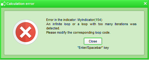 02/07/2019 at 4:25 PM #90758I tested the max by setting the first two loops with values from 1 to 1 and then slowly changed the third loops value until the indicator ran. Strangely at 695 it started to run but then crashed out with the error after a while. So I then decided to remove most of the indicator code and see what happened and I was able to get it to run with larger quantities of loops – up to 6650 loops. Clearly the number of loops is not a fixed number as my original indicator would not run with more than 480 loops but a simpler indicator would run with 6650.