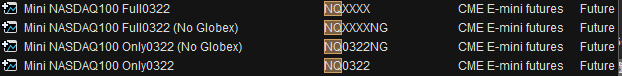 In the 4th attachment you see a couple of Futures and how the Broker names them. In there you see the NQH2 again. The H2 changes each new contract and formal rules for the naming exist. For example, the 4th quarter of 2021, the NQ was named NQZ1. 4th Q of 2020 it was NQZ0. 1st Q of 2020 should have been NQH0 (I didn’t look up that one).