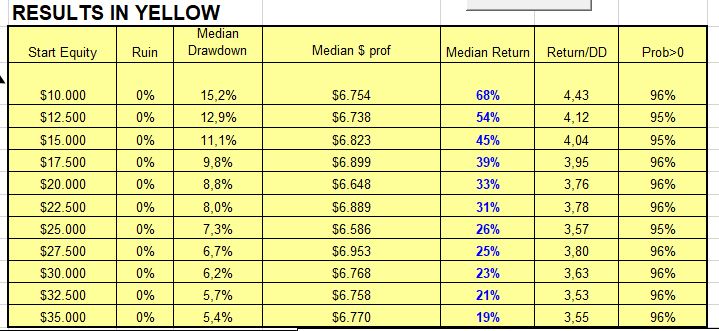 Optimization is very limited (for the trailing stop and the volatility filter), so intuitively it should be robust. Montecarlo simulatation gives reassuring results.