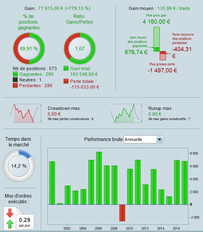 The strategy performs very well on Cac40, ok on some other European index, but not on US index. Maybe the concept is too well known already and too much algo have run it there. So main caveat for me is that it could stop working in the future.