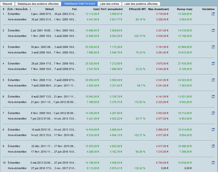 WFA with the main optimized paramaters, the trailing stop steps (TGL & TGS). For me, it suggests that optimizing the strategy on latest 3 years of data is robust, but you may have a different view?