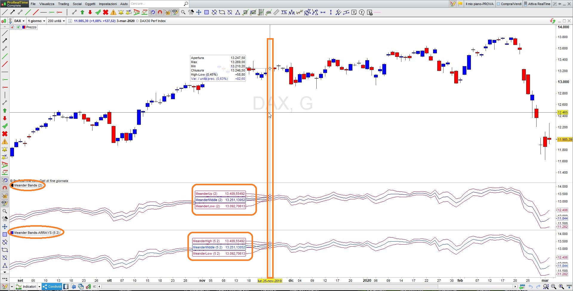 I modified the Meander Bands indicator (see v10.3 at https://www.prorealcode.com/prorealtime-indicators/meander-bands-thomas-stridsman/).