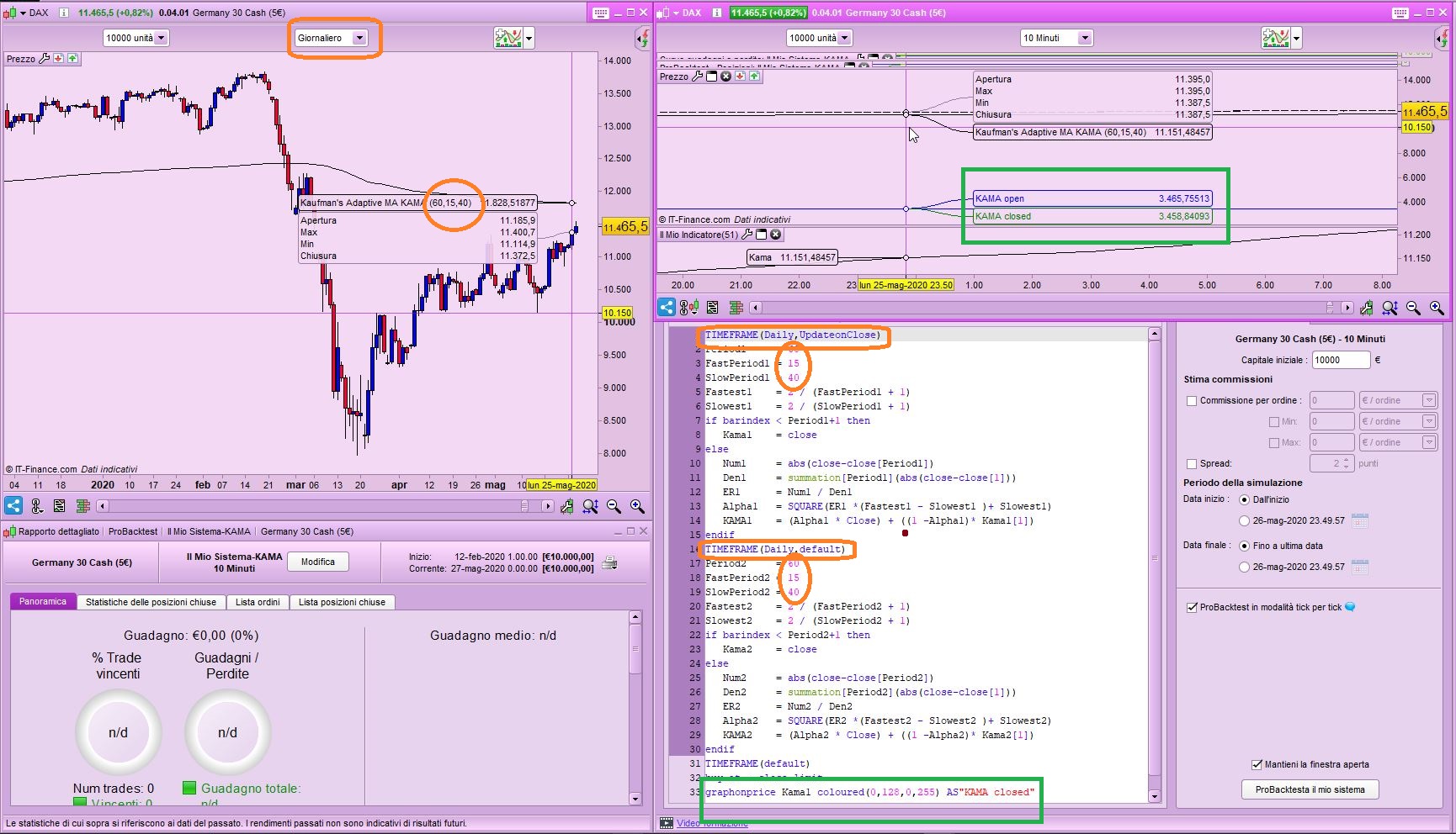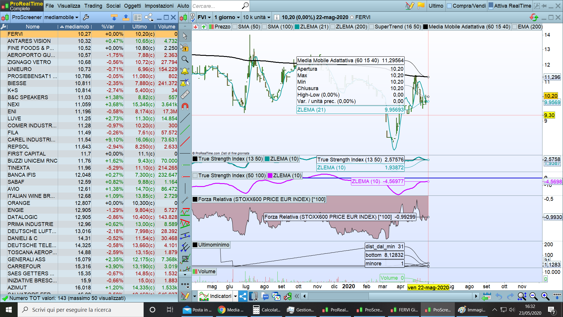 Chiedo quindi con quanti dati devo lavorare per far coincidere l’indice coi i 2 diversi strumenti e la risposta è: “meglio usare un basso numero di dati storici perché lo screener gestisce pochi dati”.