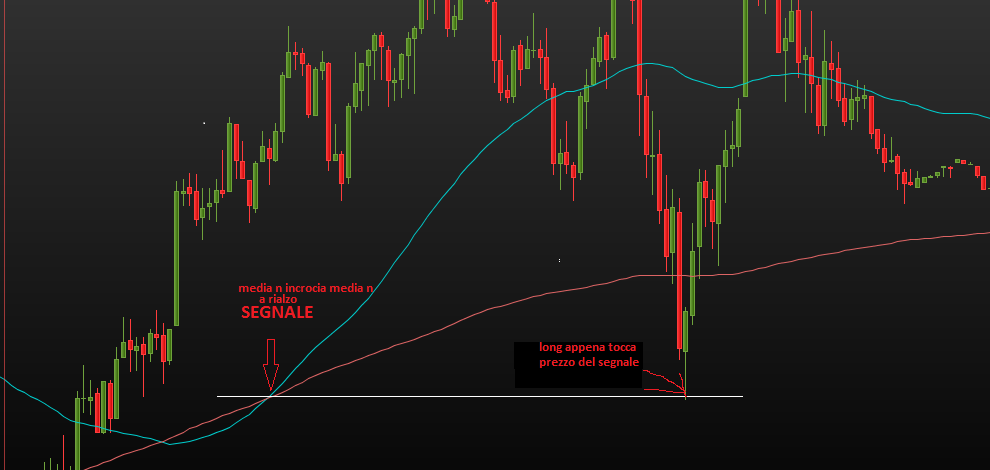 Puoi anche mettere la media a 10 periodi. Il punto d’entrata sarà il prezzo della media scelta alla chiusura della candela.