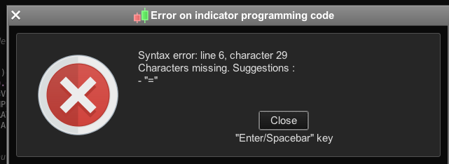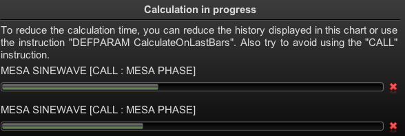 A warning comes up as it reloads: (pls see screenshot) when I added the line DEFPARAM CalculateOnLastBar in the first line of the code it also gives an error (pls see screenshot).