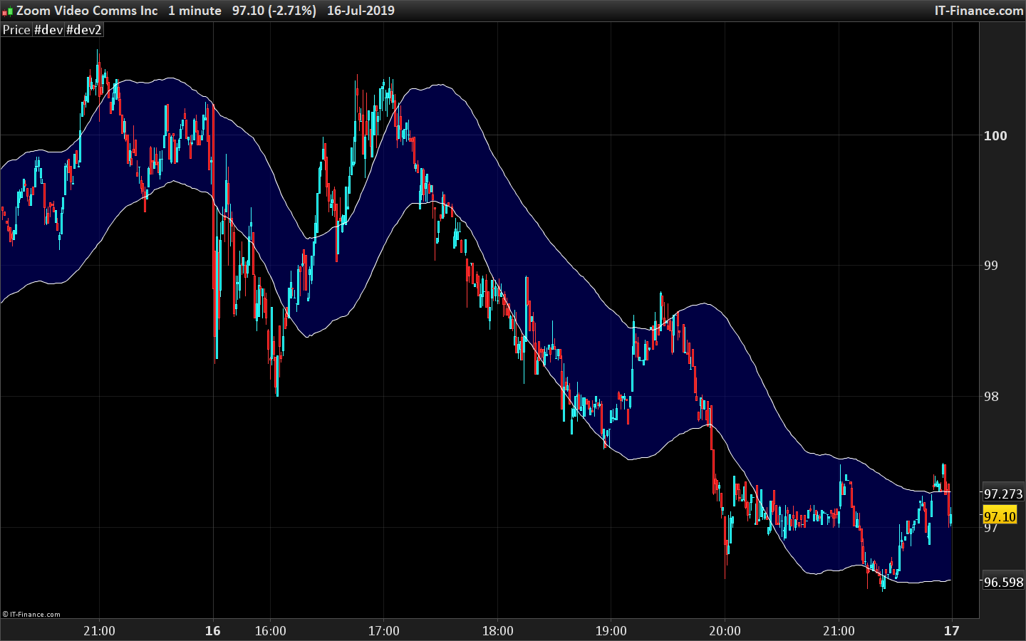 Soit le concept “inventé” par John Bollinger, les fameuses bandes de .. . On mesure un écart type qu’on ajoute / soustrait (multiplié par X) à une distribution (ici une moyenne mobile). Les oscillateurs bornés (type CCI, stochastique, ..) ont aussi la même philosophie, c’est le retour à la moyenne (mean reversion).