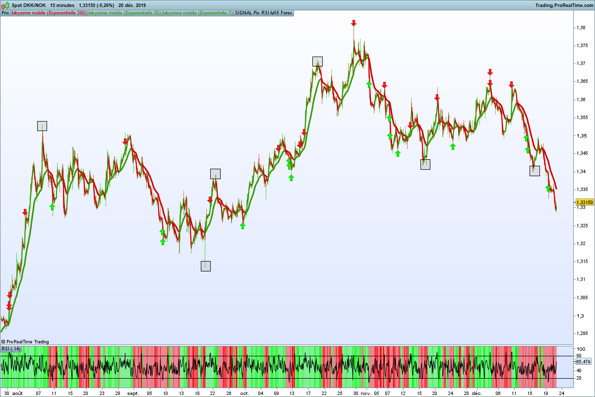 Pour ma part, je pense utiliser le RSI14 en 85/15 ou alors utiliser 2 RSI (exemple RSI 14 en 80/20 et RSI 4 en 97/3)