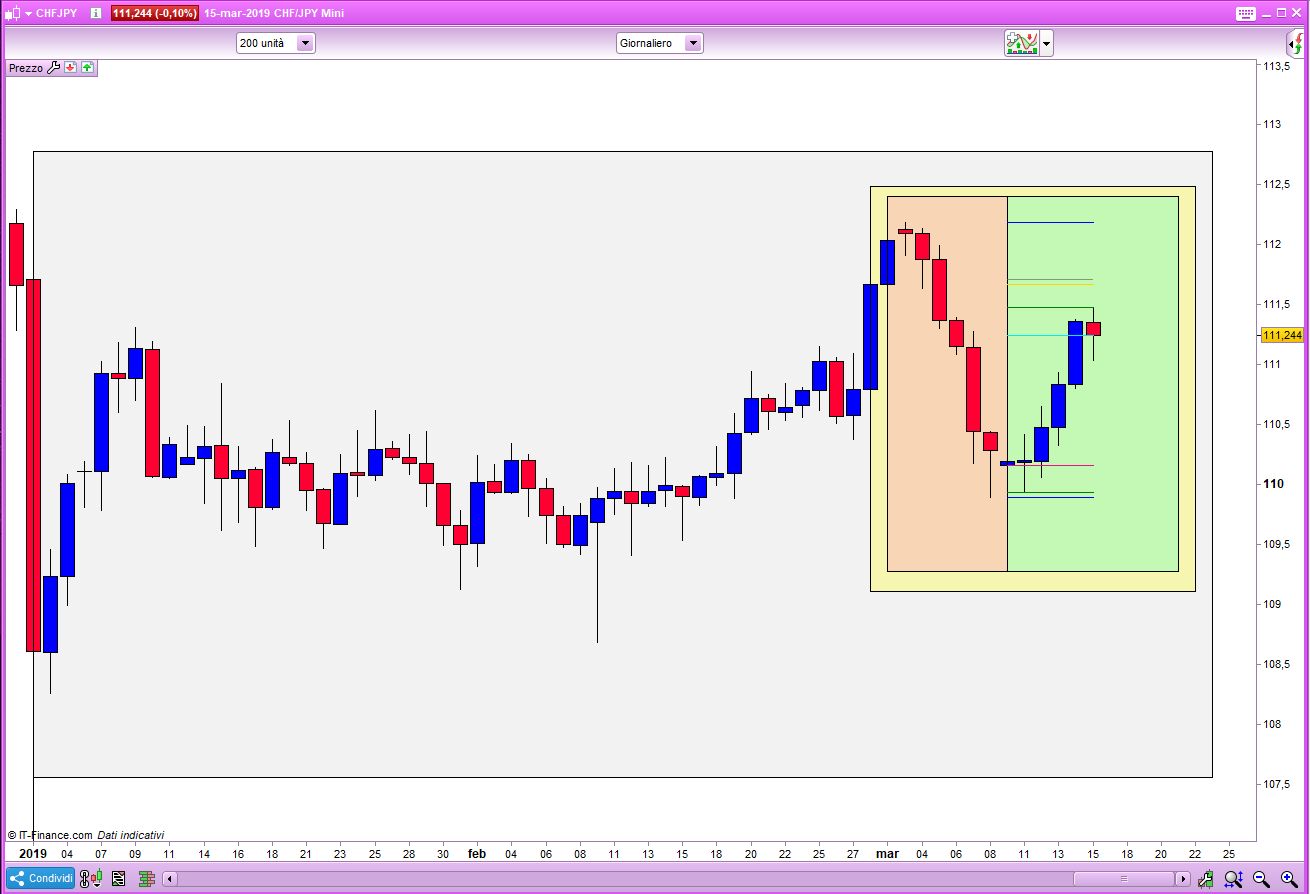 tu saresti in grado di tracciare i fibonacci tra il minimo e il massimo del periodo in esame e proiettarlo sul mese successivo ?