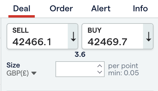 I believe to be £0.05 per point on DJI