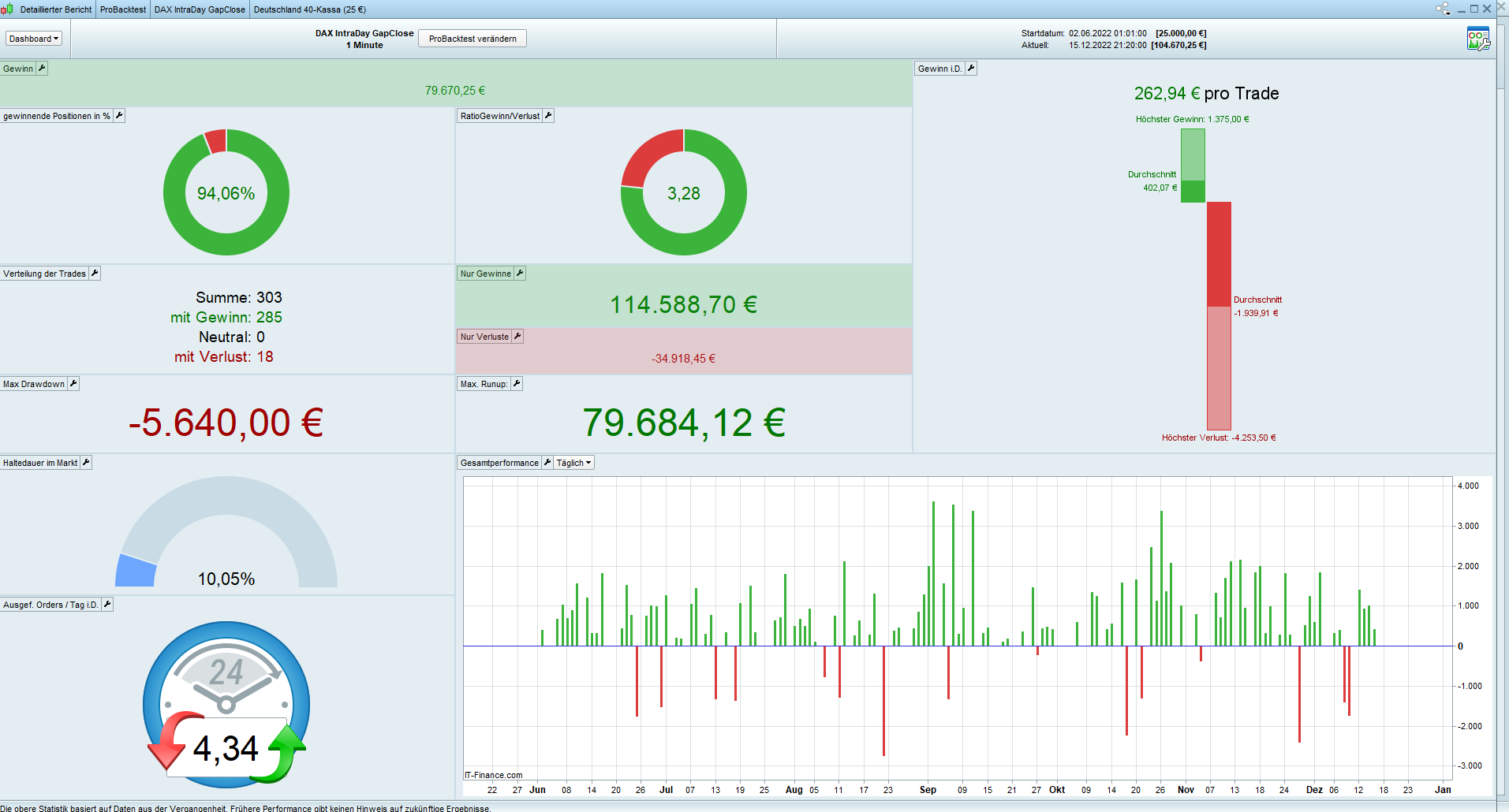 Die Ergebnisse im Backtest bei 200.000 Ticks im 1m DAX sind dem angehängten Bild zu entnehmen.