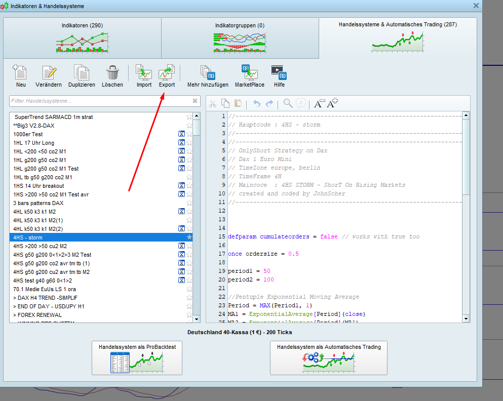 Die Ergänzung ist am sinnvollsten im Handelscode NACH DEM Trailing-Stop-Code, theoretisch einfach an den bereits bestehenden Code anhängen oder sogar den kompletten Handelscode löschen und durch DIESEN Code ersetzen.