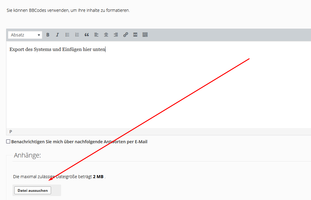 Export des Systems und Einfügen hier unten