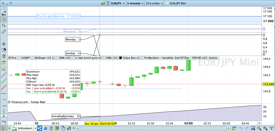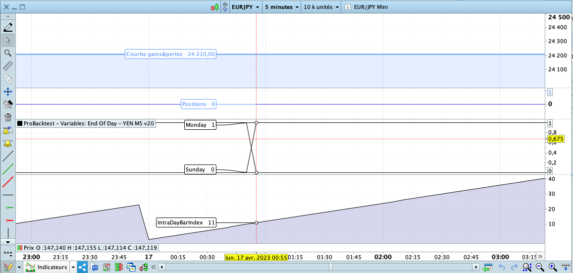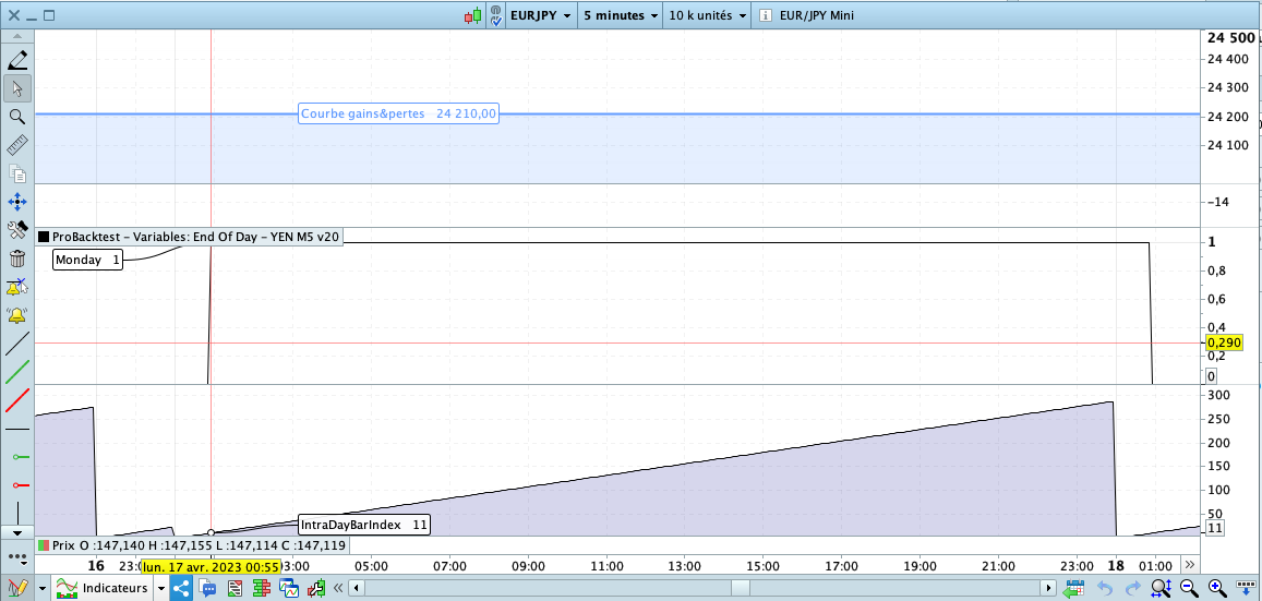 Sometimes Monday starts at IntraDayBarIndex 11, but for example you can see on the screenshot that on Monday 10 April, it starts at IntraDayBarIndex 10 🙁